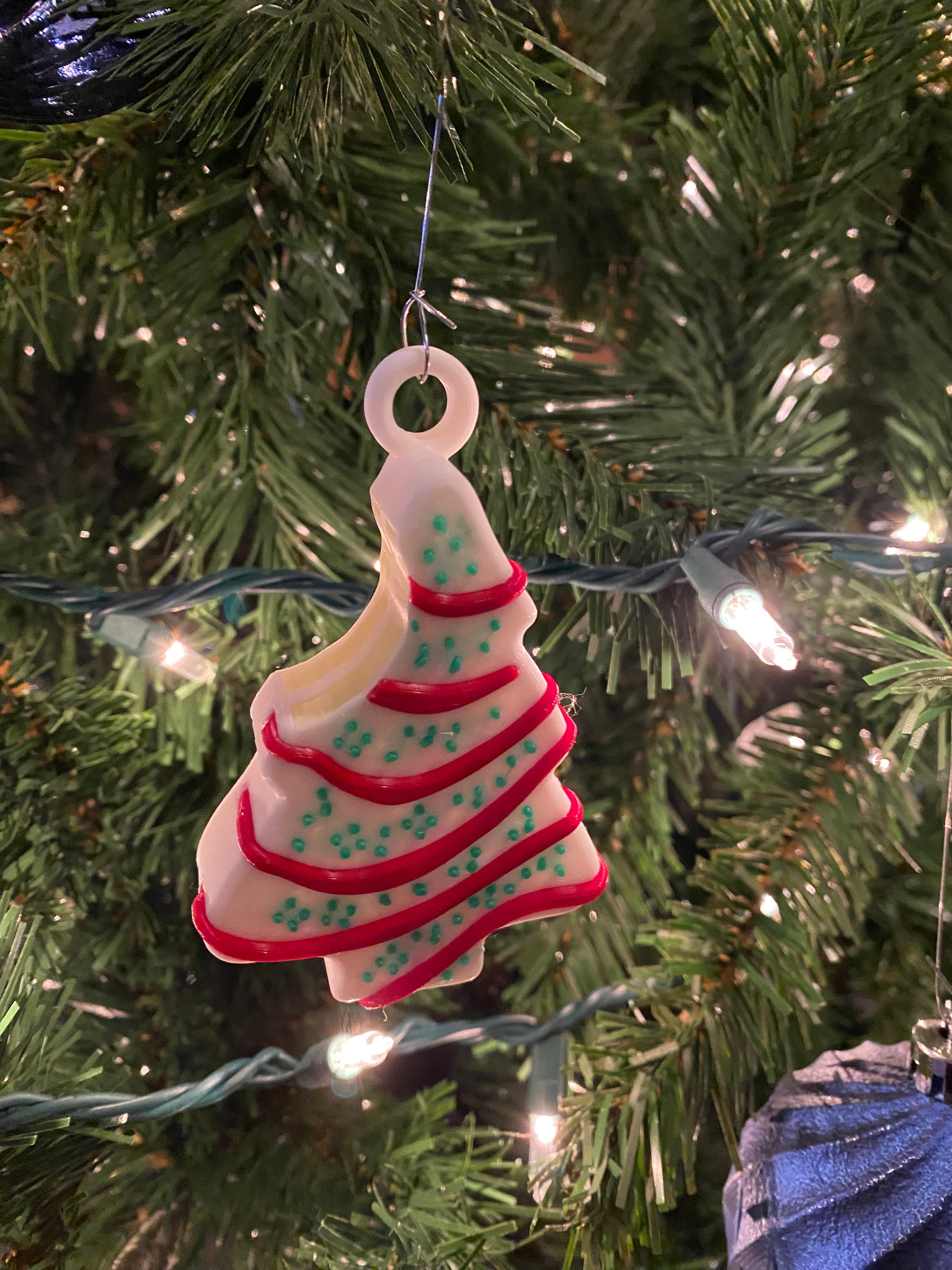 3D printed Little Debbie Christmas Tree ornament available with bite or no bite or get both and save $