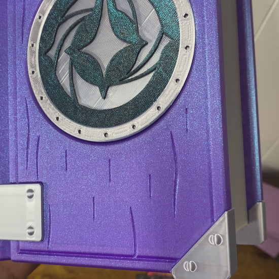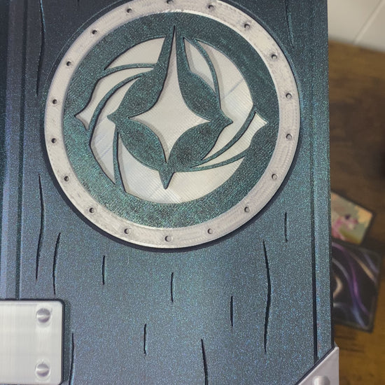 This Lorcana Themed deck holds 2 sleeved decks and has a removable tray for dice and accessories. Dice tray is removable to hold up to 3 decks! The lid is securely held shut by magnets and works great at keeping your cards safe on your way to play with friends. These awesome deck boxes are 3d printed and assembled by hand. Current wait times are up to 14 days.